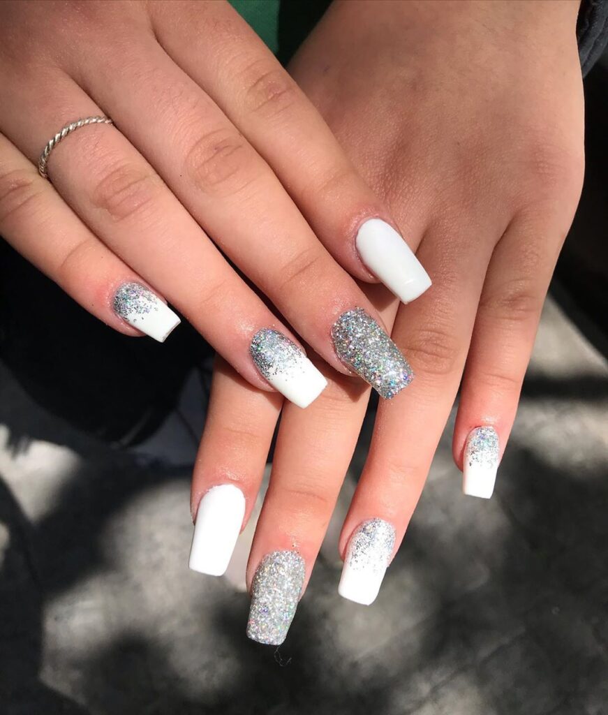 La combinación de glitter y tonos pastel es perfecta para un look suave y elegante. Añade glitter en la punta de la uña o en la base para un toque sutil pero llamativo.