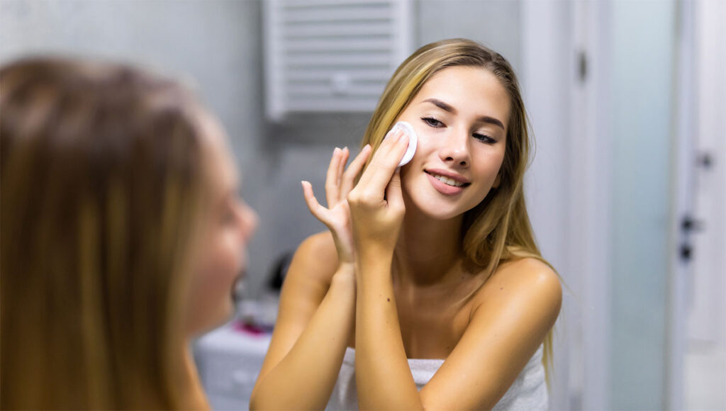 - Limpia tu rostro y aplica tus productos de cuidado facial habituales.